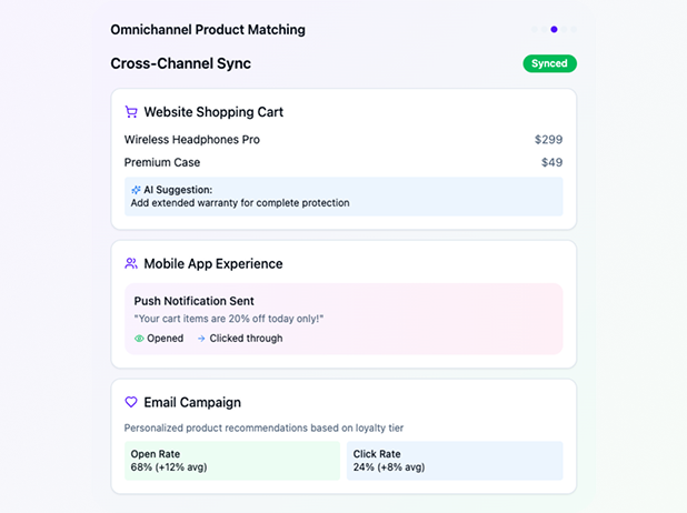Create hyper-personalized shopping experiences that match products perfectly to each customer's journey, preferences, and loyalty status across all channels.