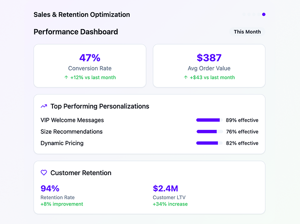 Optimize conversion rates and customer lifetime value through intelligent recommendations and retention strategies