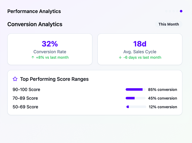 Track conversion rates, optimize scoring models, and provide insights to improve sales efficiency
